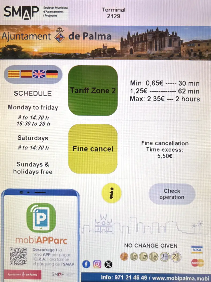 How to use parking ticket machines in Palma