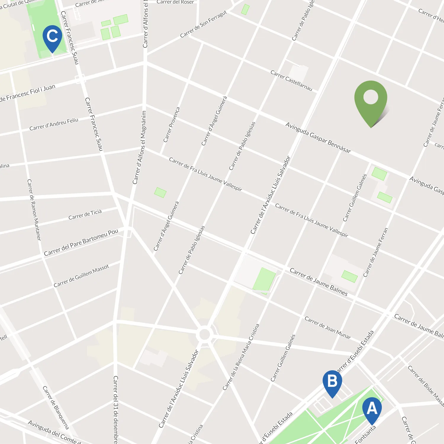 If no space is available, for example during events, you’ll find additional options within an 8–10-minute walk, including the car park Parking Parc de ses Estacions and the underground car parks Parking Palmacenter and Parking S’Escorxador.