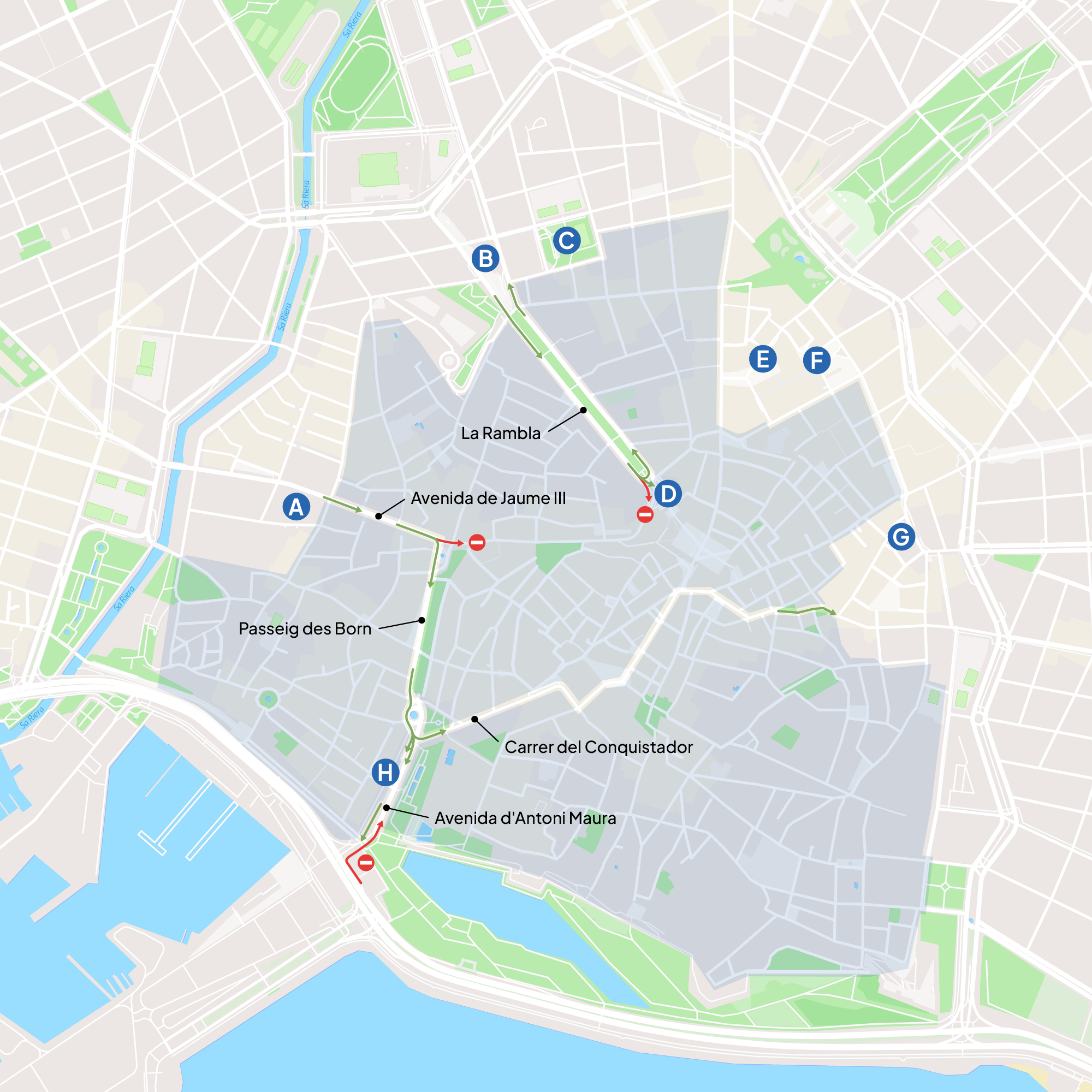 El Ajuntament de Palma ha publicado en su web un mapa con todas las zonas ACIRE. Sin embargo, este mapa resulta poco útil, ya que no muestra con claridad por dónde está permitido circular.